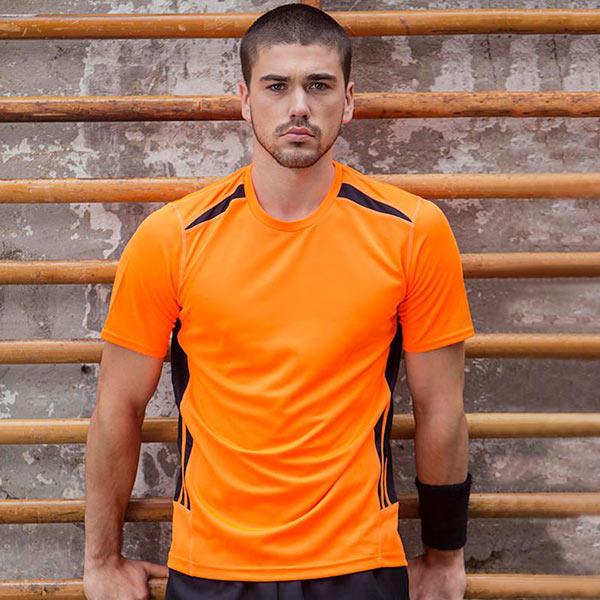 Our men's Cooltex Sports T Shirt is both stylish and perfectly suitable for all outdoor activities. Featuring sharp side and shoulder contrast panels for a more defined shape you'll look and feel great no matter what shape you're in underneath!