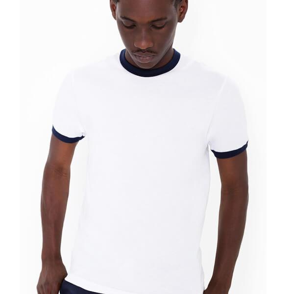 The stylish men's t-shirt features a regular fashion-fit shaped at the bicep contrast colour neck and cuff rib and a range of six head-turning colour combinations. Opt for something a little different from the bog style tee with this original O-ring detail design. Add trendy text statement slogans logos or unique photographs to one of our seven head-turning colour combinations for a one-of-a-kind tee worth talking about.