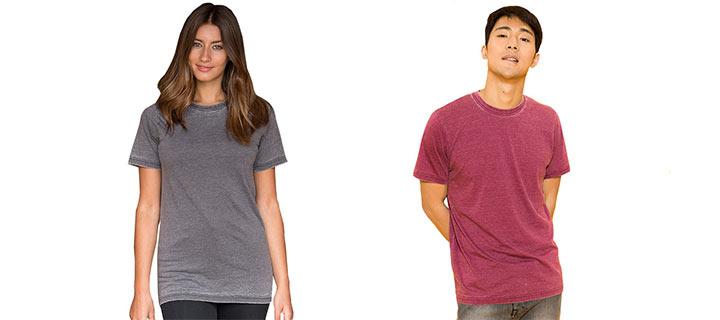 Making a major comeback from 90's hip-hop fashion our regular fashion-fit silhouette crew neck colour fade T's are hot on trend again. Opt for an edgy look with the high-quality washed-out tee which once modified to your exact specifications you'll never want to wash your hands of. Add trendy text statement slogans logos or unique photographs to a choice of over ten head-turning colour combinations for a tee that's sure to get people talking.