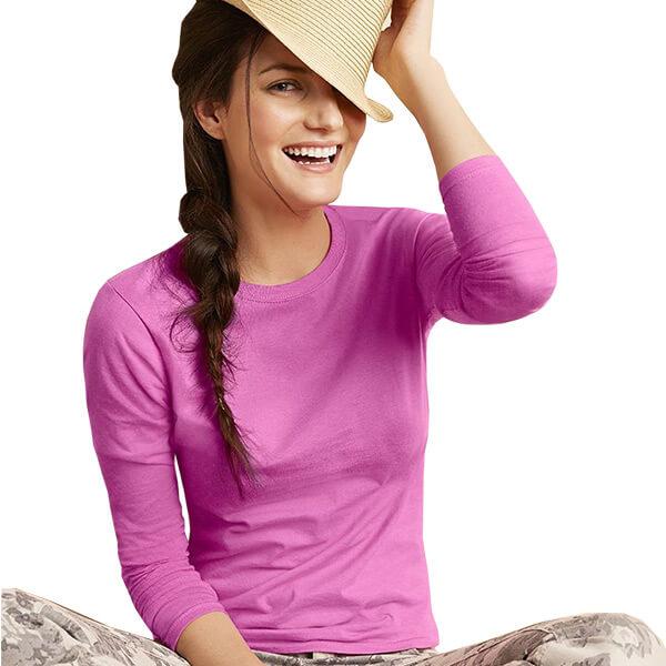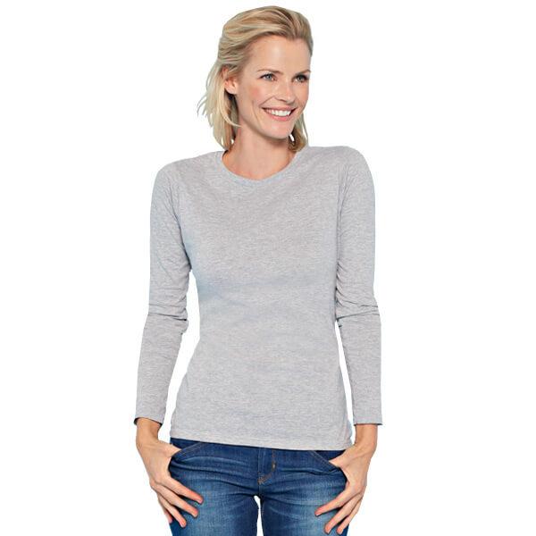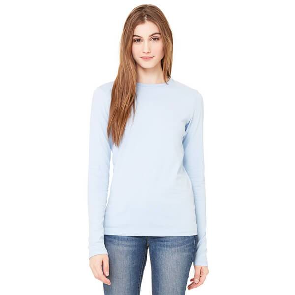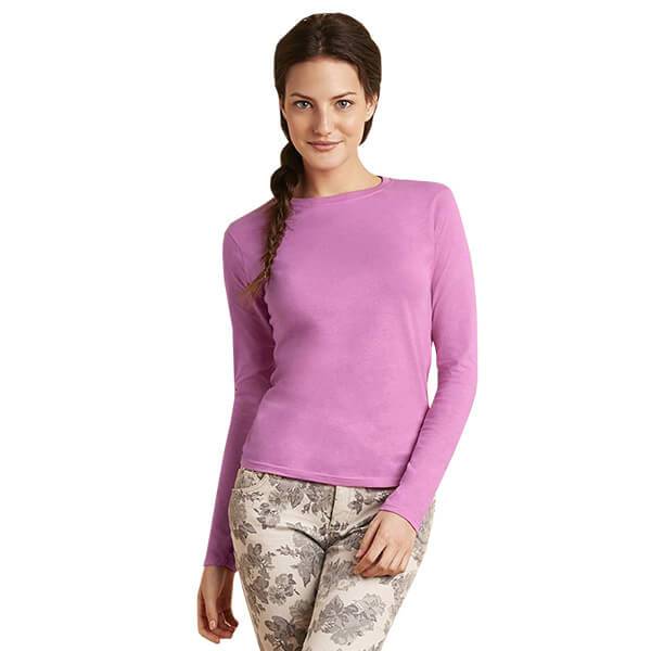 Featuring taped neck and shoulders for long-lasting durability feminine rib knit collar primarily created to keep the cold out and the warmth in a fitted fashion silhouette and 100% cotton pre-shrunk jersey to maintain shape after every wash the long sleeve women's tee will never let you down on quality or comfort. Whether you use them as an everyday base or a focal feature they will fast become one of your favourite essentials. Design yours by adding charity logos favourite photos company slogans or even your very own original artwork for a different and dynamic approach to putting your portfolio prints out there. Whichever designs you chose the ultra tight knit surface of these tees ensures excellent screen print and embroidery every time.