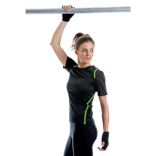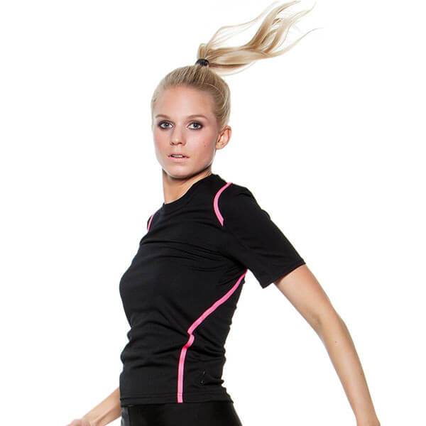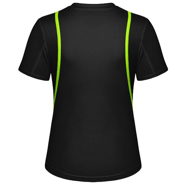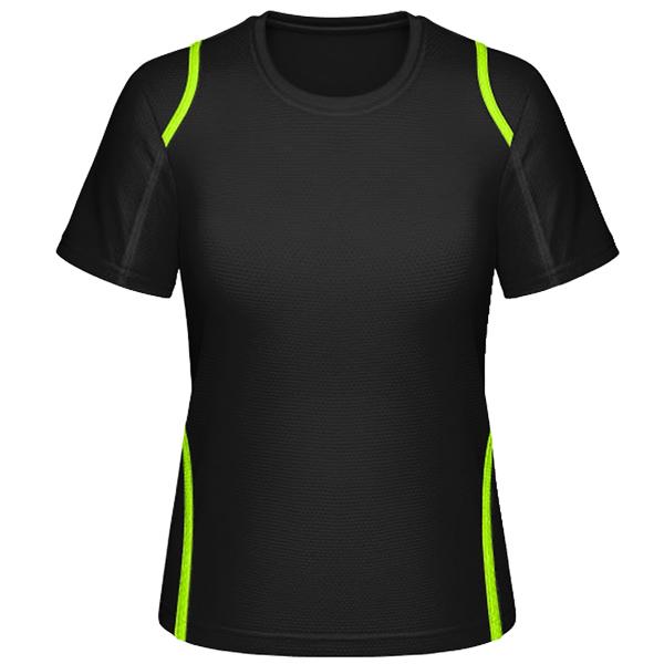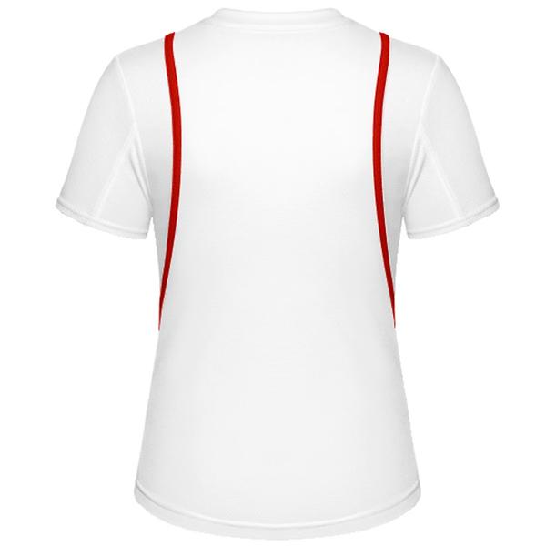 Our 100% textured polyester tees provide a superior printing surface and include moisture wicking fabric for the ultimate quick-dry performance. Featuring contrast binding running over the shoulder down the back and round to the front finishing at lower hem this sports t-shirt works to provide natural shapely curves so that no matter what shape you're in underneath you'll feel fit as a fiddle!
